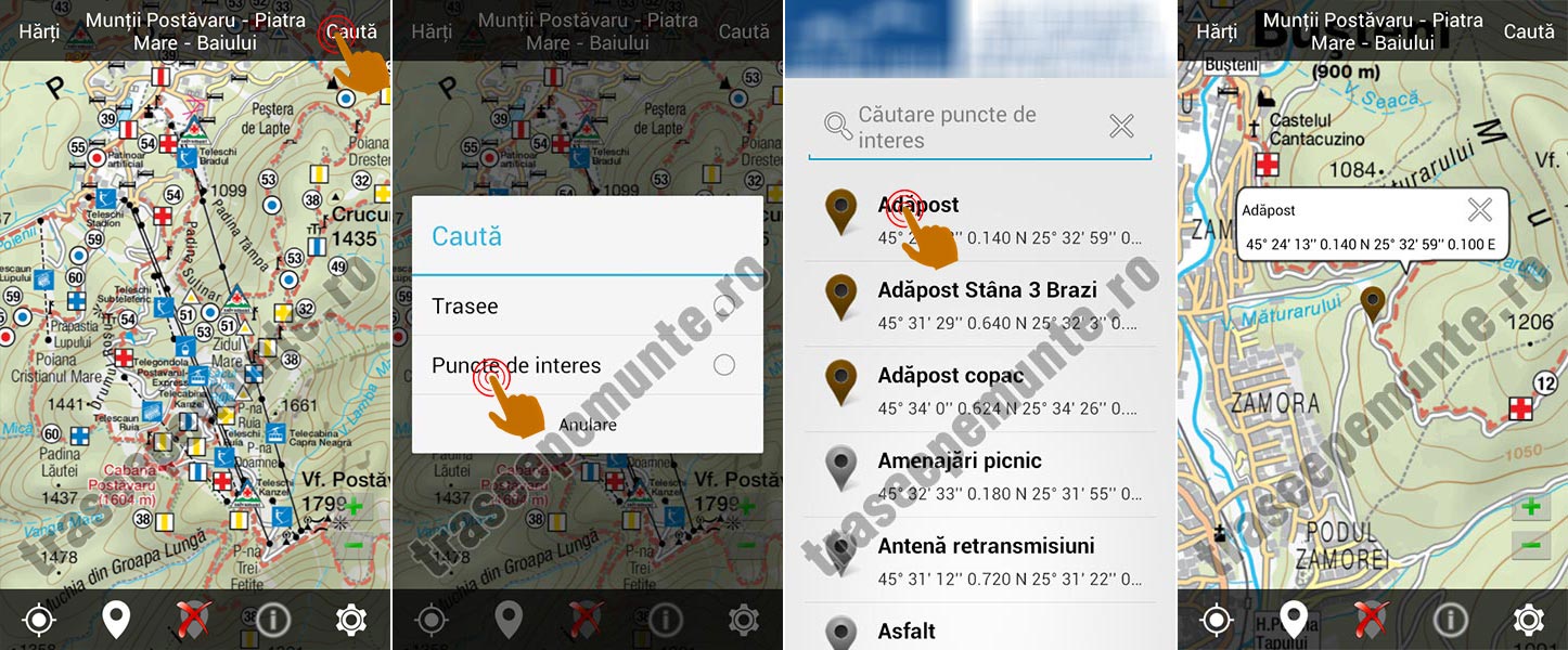 Cum se cauta punctele de interes in aplicatia „Muntii Nostri”: