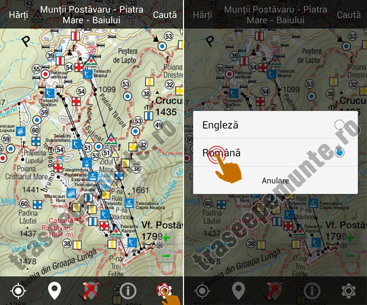 Cum se schimba limba in aplicatia „Muntii Nostri”: