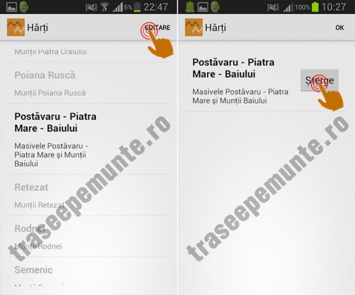 Cum se sterge o harta in aplicatia „Muntii Nostri”: