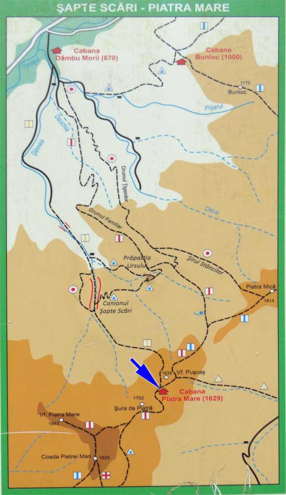 Acces: se poate doar pe jos. Cele mai cunoscute trasee care duc spre cabana Piatra Mare pornesc din zona denumite Dambul Morii (Timisu de Jos).
