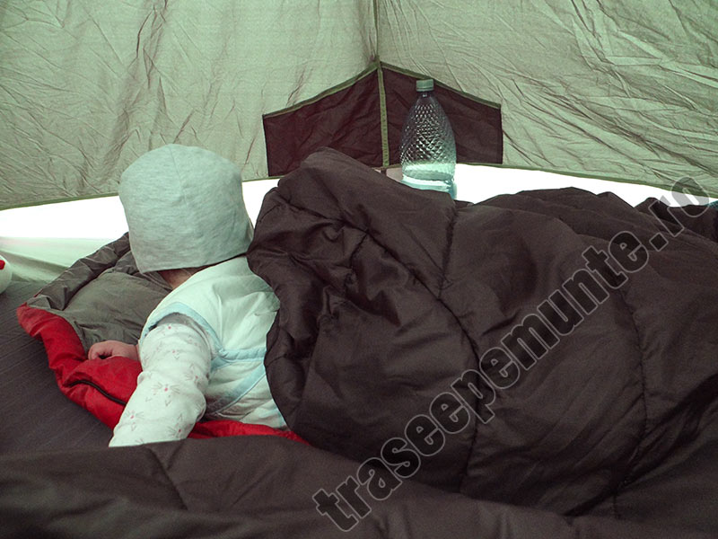 – daca se alege inoptarea la cort este indicat ca locul de campare ales sa fie in apropierea unei cabane. Despre dormitul la cort mentionez doar ca intre mama si tata, bebelusa mea a dormit ca si acasa;
