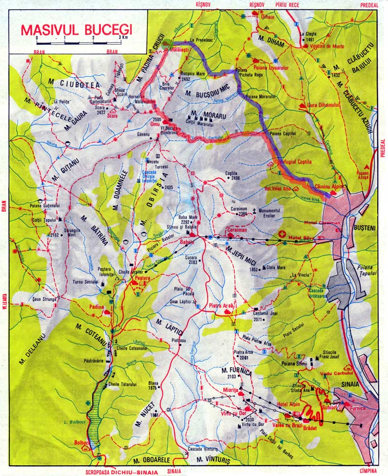 Busteni (885 m) – Caminul Alpin (925 m) – Poiana Costilei (1310 m) – Poiana Pichetul Rosu (1445 m) – La Prepeleac (1750 m) – Cabana Malaiesti (1720 m)