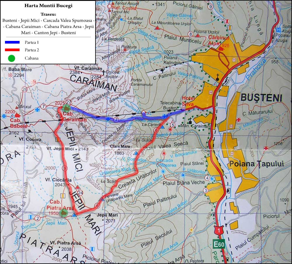 Traseu montan in Muntii Bucegi. Obiective turistice: Busteni, Cascada Valea Spumoasa, Valea Jepilor Mici, Cabana Caraiman, Canton Jepi sau Schill si Jepii Mari.