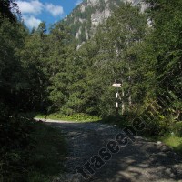Dupa 10 minute de la intrarea in padure, la prima prima bifurcatie se paraseste marcajul „cruce albastra” pentru a se urma cararea nemarcata din partea dreapta. De la aceasta bifurcatie se inaiteaza inca aproximativ 20 de minute pana la Cascada Valea Spumoasa si Refugiul Salvamont Busteni.