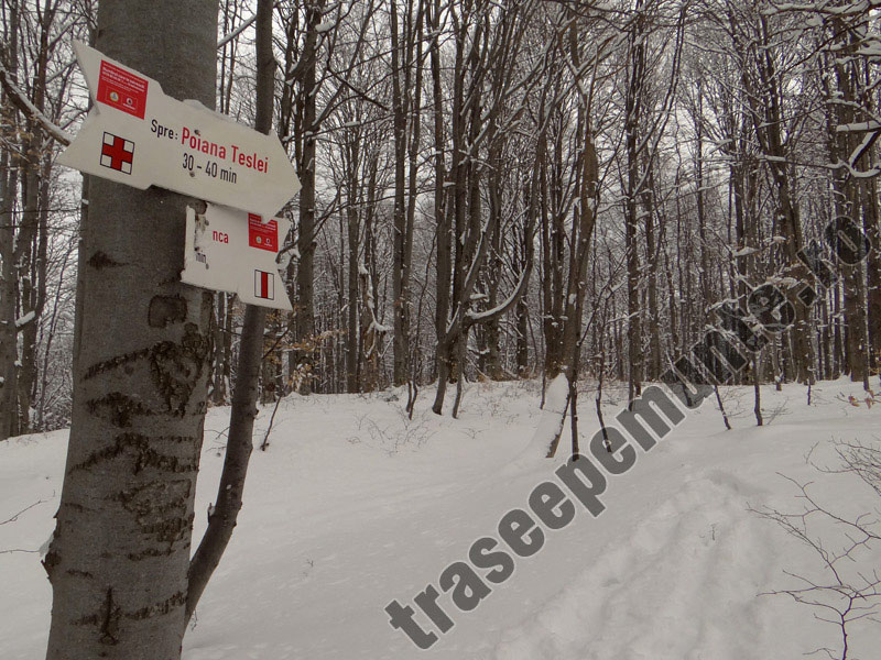 Saua Teslei (1.347 m) – traseu de legatura intre marcaj „cruce rosie” si „triunghi rosu”