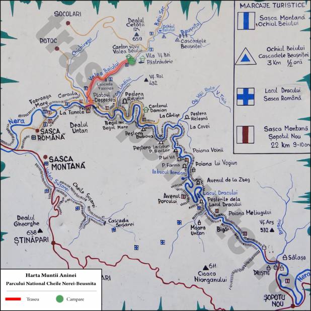 Traseu spre Cascada Vaioaga si Camping Valea Beiului. Cheile Nerei-Beusnita