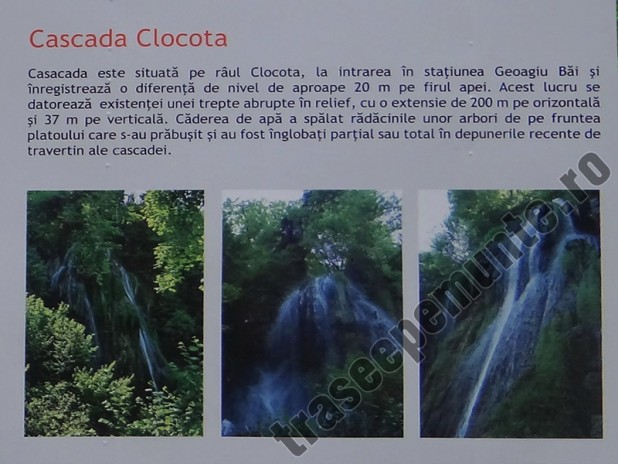 Detalii: Pentru a ajunge la Cascada Clocota, din centrul localitatii Geoagiu Bai cautam strada Scolii si inaintam pe aceasta pana cand se termina drumul asfaltat. Urmeaza sa cotim spre stanga si dupa putin timp spre dreapta, pe cararea ce duce pana la Cascada Clocota.