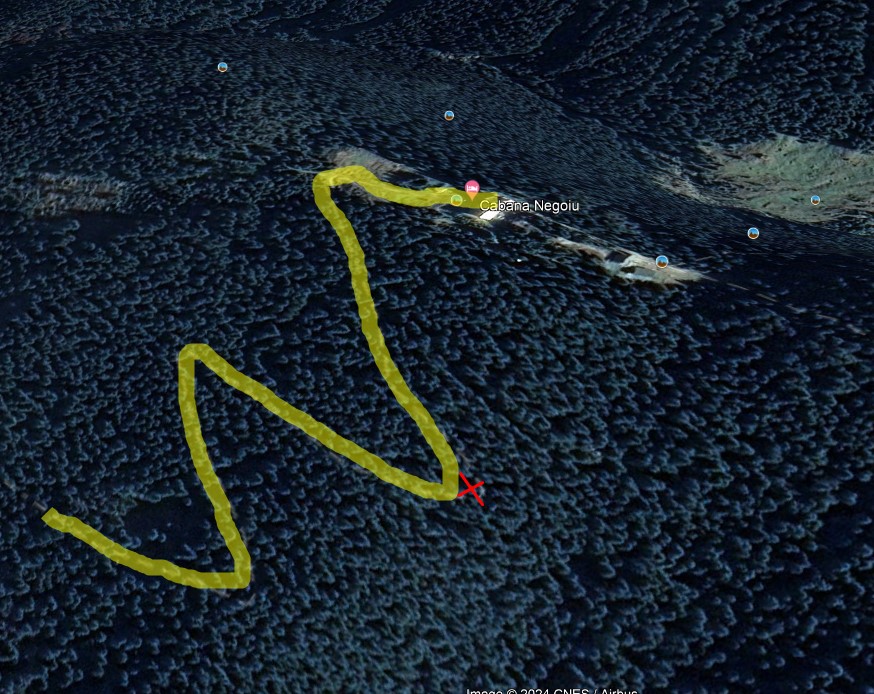 Surse de apa: apa curenta si izvor la cca 10 minute mai jos de cabana, pe marcaj triunghi albastru – vezi poza (GPS: N 45° 36.212′, E 024° 31.663′)