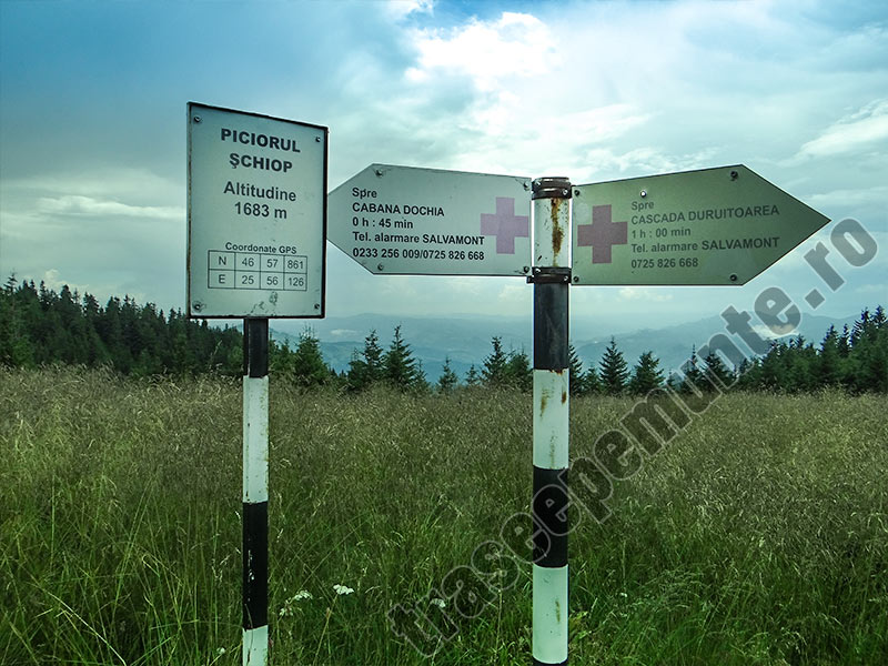 Luam o pauza, asteptam sa treaca ploaia, iar mai apoi continuam spre Cascada Duruitoarea pe cararea marcata cu „cruce rosie”.