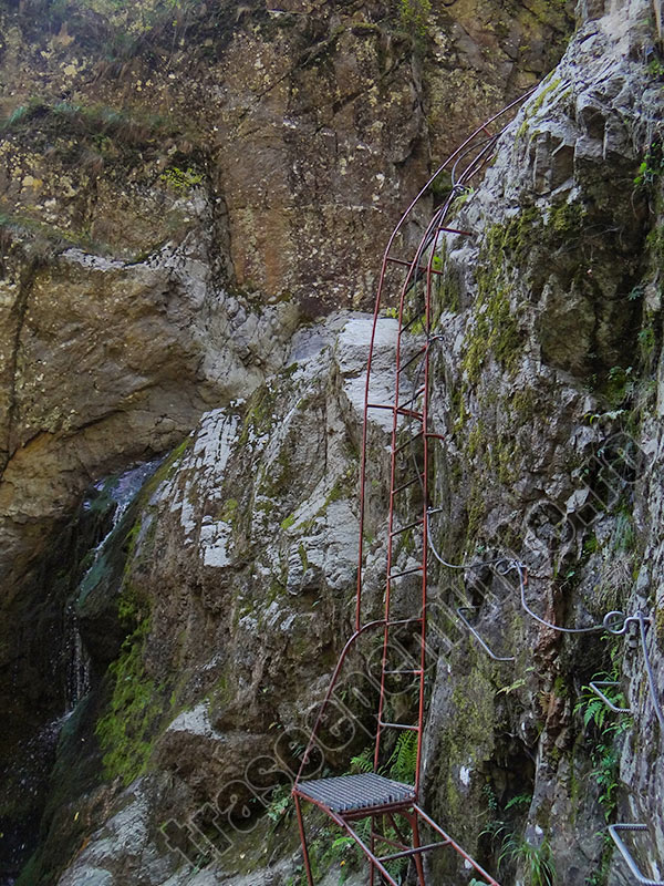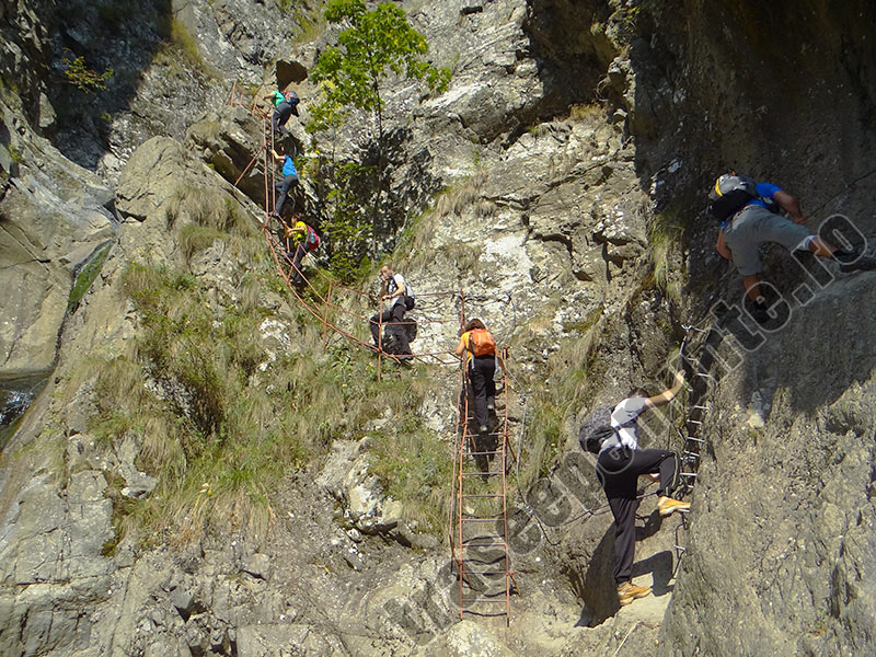 daca nu-i este frica de inaltime si daca a mai fost pe munte… Este o scara verticala cam de 15 metri, acolo este mai periculos… gen canionul 7 sacări, putin mai mica ca cea mai inalta de acolo. Eu nu pot sa-ti spun daca poate sau nu… il cunosti mai bine… oricum poti sa incerci si daca simti ca ii este frica sau altceva, te intorci…