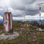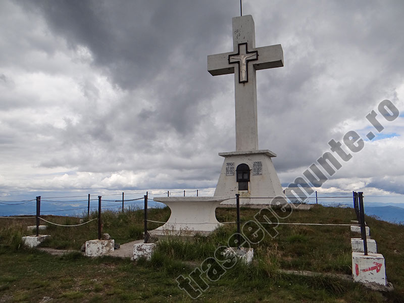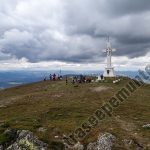 Mai departe cararea urca accentuat printr-o portiune a traseului cu jnepeni inalti. In departare, in spatele nostru, vedem Pietrele Doamnei de pe Masivul Rarau. Urmam cararea si nu dupa mult timp in fata noastra se inalta crucea de pe Giumalau. La aproximativ 20 – 30 de metri de monument se afla Varful Giumalau, cu altitudinea de 1858 de metri.