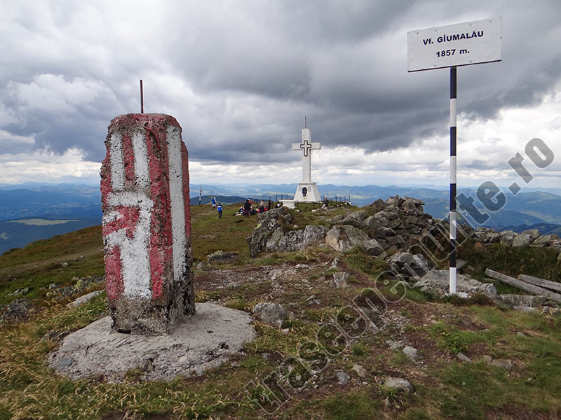 Traseu montan in Muntii Giumalau. Obiective turistice: Saua Fundu Colbului, Polita Caprelor, Crucea de pe Giumalau, Varful Giumalau si Cabana Giumalau.