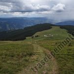De la cabana urmam cararea marcata cu „cruce rosie”. Inaintam aproximativ 500 de metri, pana la marginea padurii. Urmeaza o portiune unde marcajul lipseste. Cotim spre stanga, spre nord, ne indepartam de brazi si traversam o muchie de deal pana ajungem din nou la baza padurii.