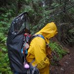 In continuare cararea continua pe curba de nivel, iar dupa aproximativ un kilometru si jumatate intram in padure, unde ne prinde si ploaia.