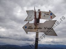 Creasta Giumalaului-marcaj pe munte. Acesta este un semn de directie si este situat aproape de Varful Giumalau.