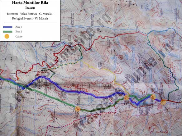 Traseu montan in Muntii Rila, Bulgaria. Obiective turistice: Borovets, Cabana Musala, Lacurile Musalenski, Lacul Alekovo, Refugiul Everest si Varful Musala.