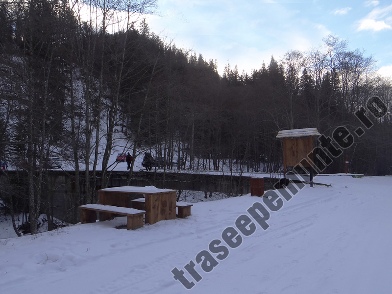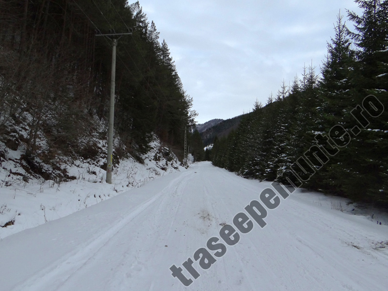 Cabana Cascoe (910 m) – drumul comunal din Valea Dambovitei (DC 21) – podul peste raul Dambovita (865 m)