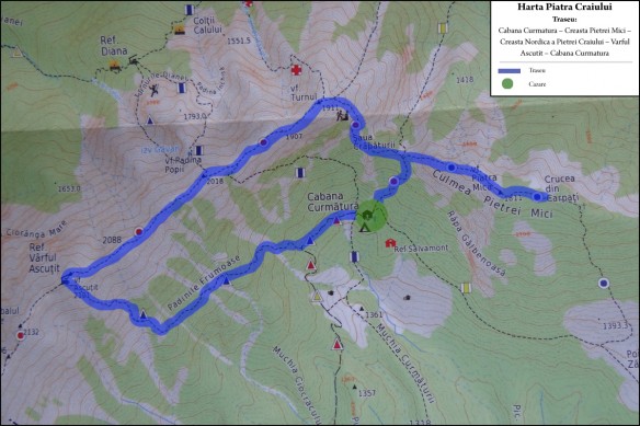Cabana Curmatura (1470 m) – Saua Crapaturii (1660 m) – Creasta Mica a Pietrei Craiului [Varful Piatra Mica (1816 m) – Crucea Eroilor (1791 m)]