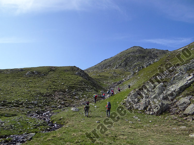 Caldarea Galbena, Muntii Fagaras. Poza este facuta de langa Lacul Galbena Mare. Putin mai sus se gaseste marcajul „cruce albastra” si un izvor.