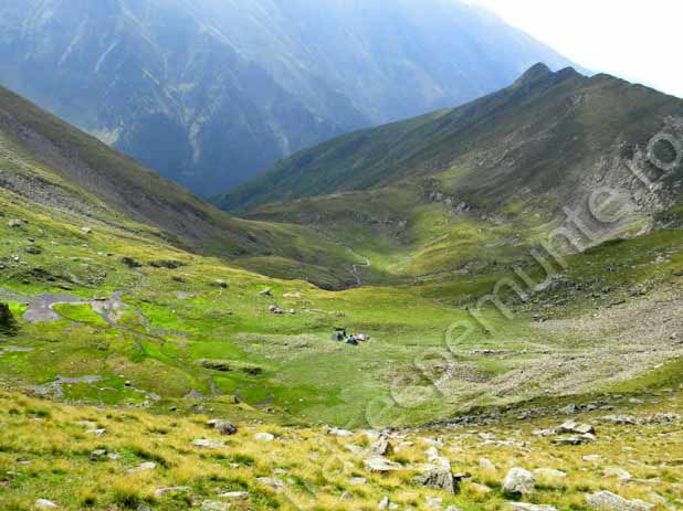 [Un alt loc de campat: poalele Muntelui Moldoveanu – se poate cobori de pe Saua Orzanelei. Marcaj: triunghiul rosu
