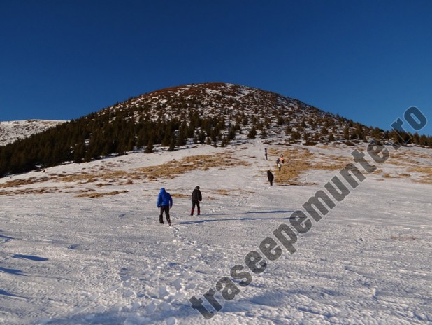 Apres Ski (1.795 m) – Spre dreapta, pe langa partia Sureanu – Intersectie cu marcaj „triunghi rosu” – Culmea Bratesului – Varful Sureanu (2.059 m)
