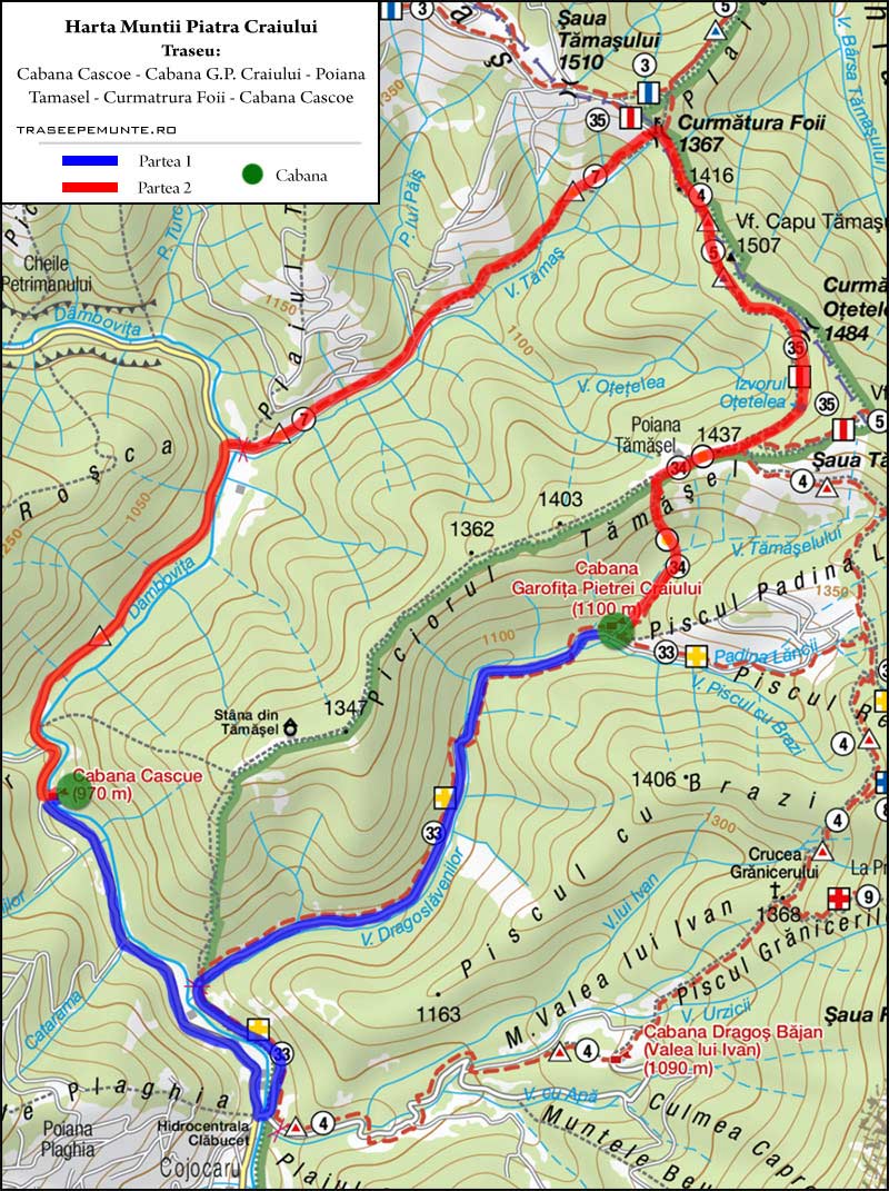 Harta Muntii Piatra Craiului. Traseu la Cabana Cascoe